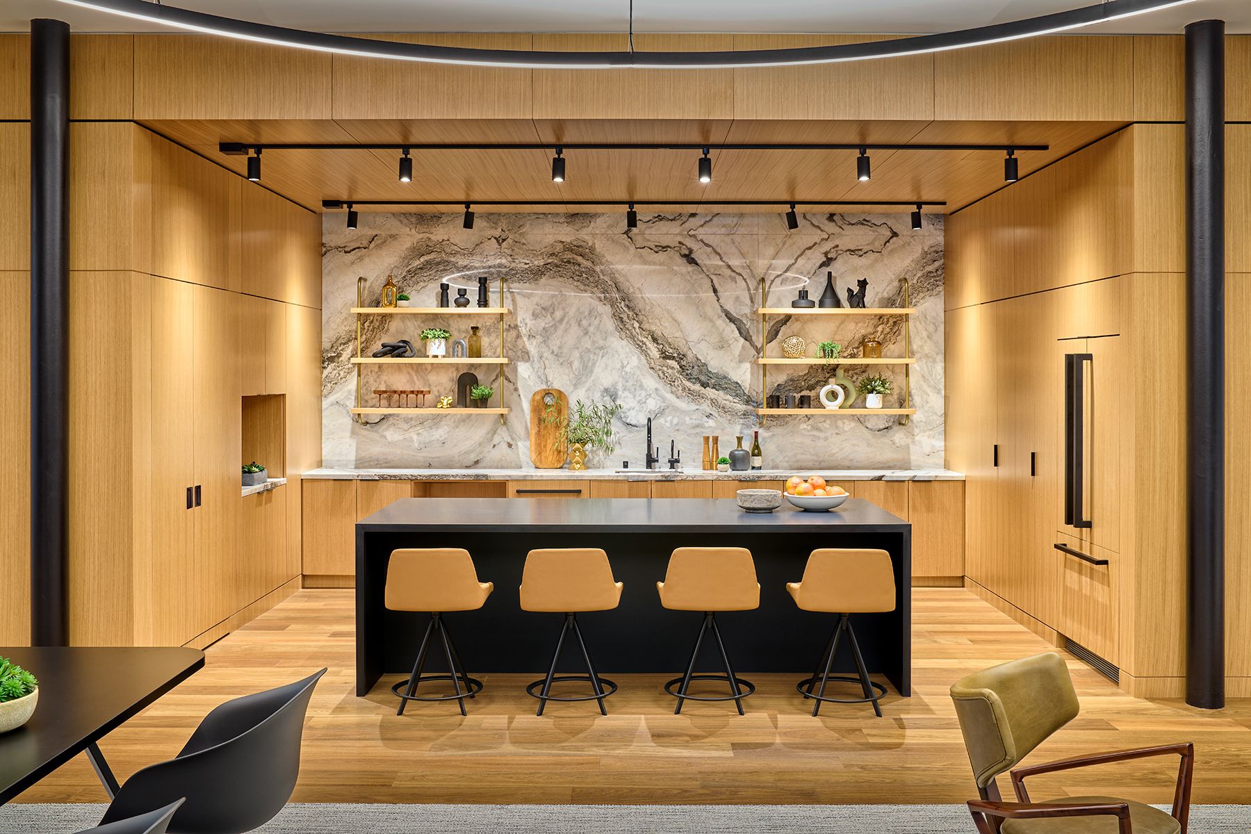 Welcome Desk, Lobby Entrance, Banquettes, Lounge Area, VIP Lounge, Serveries, Wall Paneling, Lounge Bar, Recessed Seating, Wall Slats